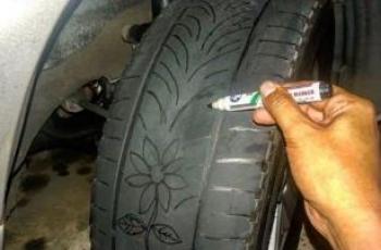 Entah mendapat inspirasi dari mana, seorang kemudian menghiasi ban gundul itu dengan spidol. Ia menggambar garis mirip dengan pola ban baru lengkap dengan gambar bunga di permukaan.